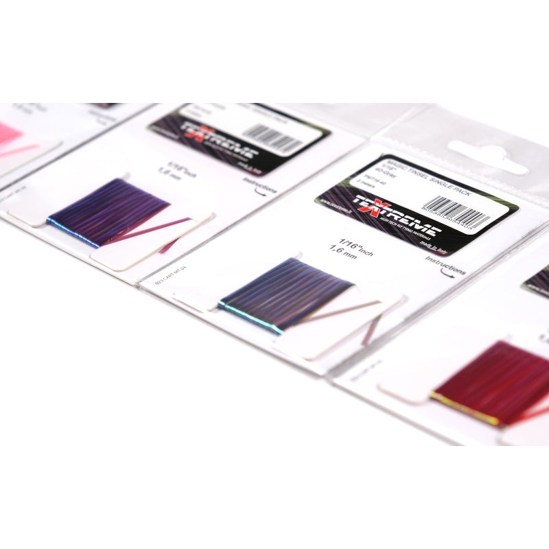 Special Pearlescent/Ultraviolet film with beautiful color-changing effects. Offered in a pack with the width of 1.6 mm., it covers all possible uses, from wing cases to body ribbing, and as main material for bodies with different5 shades. Being semi-transparent, it allows for infinite combinations by first creating an underbody with tying thread (Standard or Floss series), and then wrapping the desired color of Magic Tinsel. Thanks to its special lamination, it can also be stretched with a slight pull, transforming into a tubing with excellent strength and a unique light effect (illustrated instructions on the back of the blister). It can be used as ribbing material instead of wire, adding an extra touch of light and color to the fly, while still maintaining excellent strength and not slipping on the fibers. The same tubing can also be used as the main material for forming entire bodies (or parts of them), wrapping it by hand like any thread, as it is very soft and flexible. For example, if you create a body with the Flat version and then wrap over it our Synthetic Biot you can obtain fantastic and imitative nymph, chironomid, wet and dry fly bodies.
