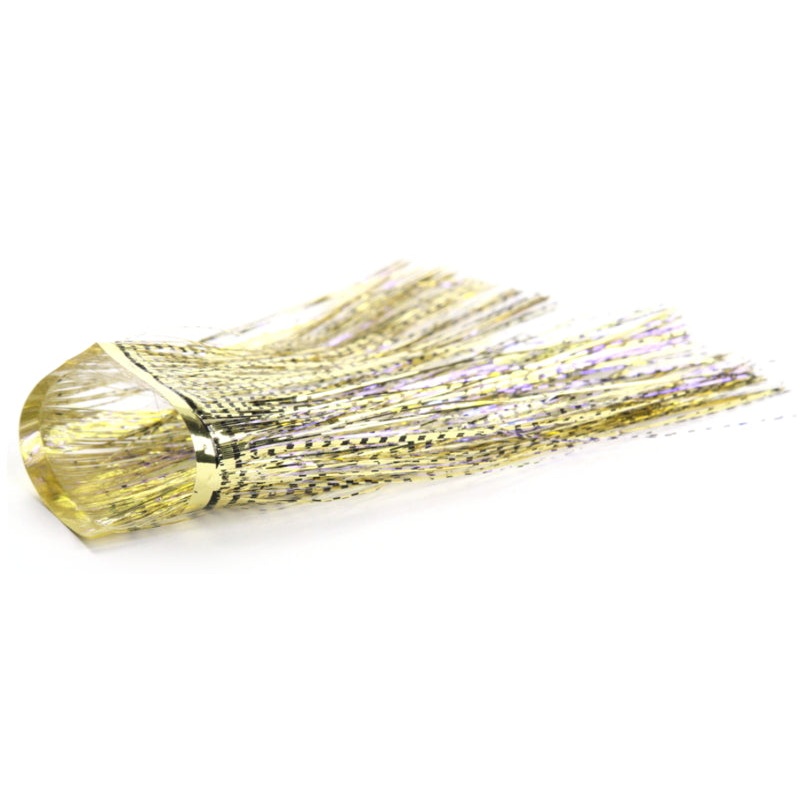 Thin strands of ultraviolet angel fiber, printed with a barred effect. Perfect addiction to all stillwater and saltwater patterns.