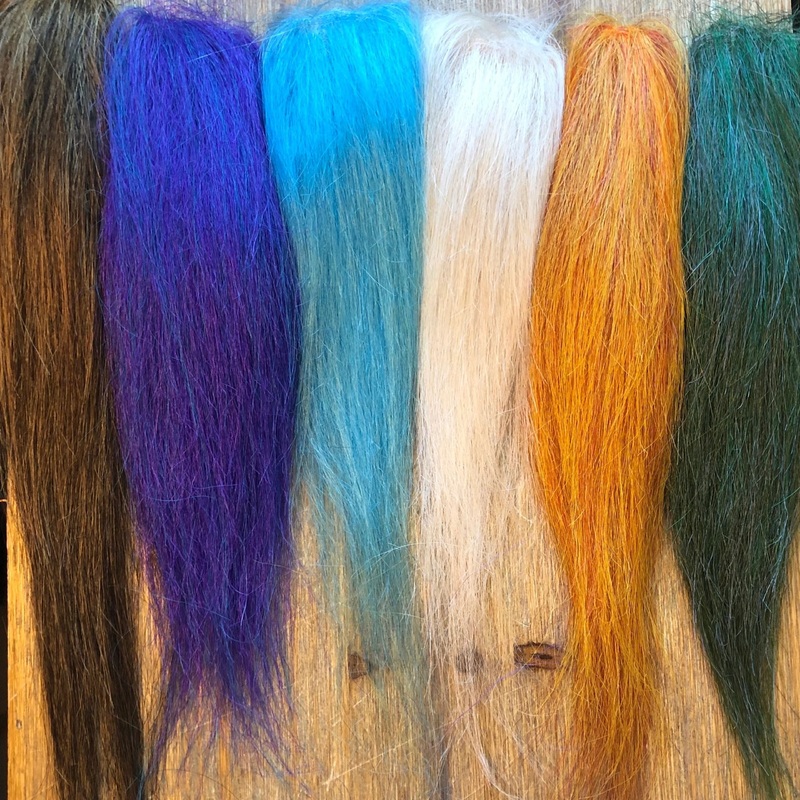 The Big Six! Name: River RockLength: 9″-11″Color description: Light and Dark Brown Squimpish Hair Name: BlurpleLength: 5″-7″Color description: Neon Blue and Neon Purple Squimpish Hair Name: AquaLength: 5″-7″Color description: Aqua Name: CreamLength: 5″-7Color description: Cream Name: PumpkinLength: 5″-7″Color description: Orange with Red and Pink Highlights Name: EvergreenLength: 7″-9″Color description: Green Squimpish hair with Blue highlights Squimpish Hair is a synthetic fly tying material best described as a synthetic cross of bucktail and polar bear.The fibers come on a patch like a rug and are generally 6″-12″ with “underfur” and “guard hair”. Listed taper is length of working material, variable density on patches.All blend-able and stack-able. Durable and trim-able. Swims extremely well and sheds water when tied sparsely. Blends well with other feathers flash’s and furs.