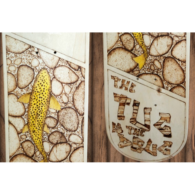 For Mark, skateboards evoke the freedom and fun of childhoodjust like fishing. Together, they make perfect sense. His deck pieces are unexpected, nostalgic, and sure to stand outideal for a bar, man cave, or one-of-a-kind gift.