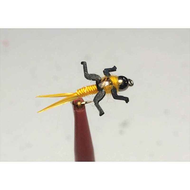 The Warrior nymph was designed to honor a young man, Wesley Zablocki. Wesley loved to fly fish when ever he could, whether it be trout or panfish. Wesley was diagnosed at age 7 with pediatric cancer, Osteosarcoma, a bone cancer. The color of the fly, gold, is the color of the pediatric cancer ribbon, hence the gold color fly.