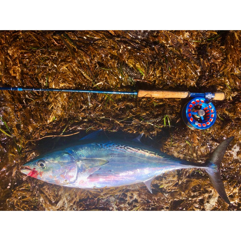 Includes aluminum rod tube with machined bar-stock aluminum collar and cap. Blue powder-coat with pewter Thomas & Thomas logo.
