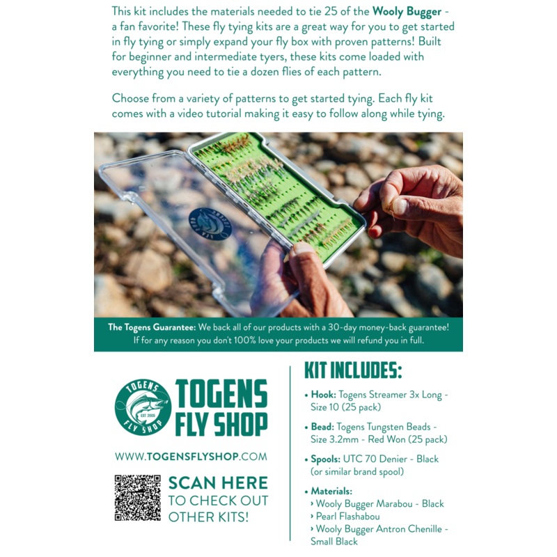 This kit includes the materials needed to tie 25 of the Woolly Bugger – a fan favorite! These fly tying kits are a great way for you to get started in fly tying or simply expand your fly box with proven patterns! Built for beginner and intermediate tyers, these kits come loaded with everything you need to tie a dozen flies of each pattern.