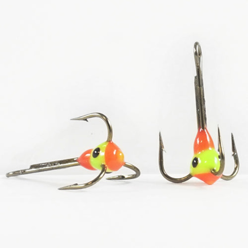 Pimpelkrokar gjorda p lngskaftad traditionell krok frn Mustad eller VMC 9619 med lim och lim med garntofs.