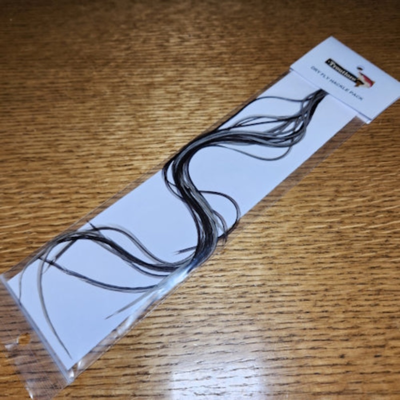 There is a range of colours within the packs, including black, brown, grizzly, badger, white, ginger and more, mostly in the #10 #16 size range. These include select feathers from both Whiting and Hebert Miner saddles, and are all high quality dry fly tying feathers.