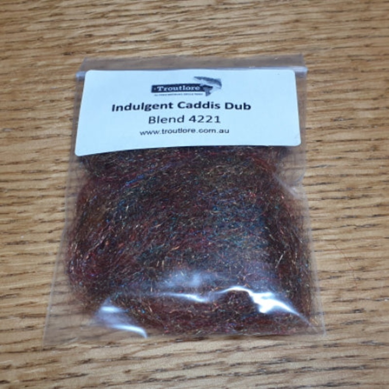 The Indulgent Caddis Dub came about when Scott from Indulgence Flyfishing asked me to replicate some scraps of dubbing he had in a bag on his tying desk. It was from an era long since past and had been used as the body dubbing for his stick caddis pattern. Well, after quite a few trial runs, mixing a range of natural and synthetic fibers we came up with a product that both of us were happy with for the task at hand.