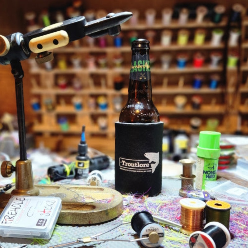 The Troutlore Stubby Holder, this seasons most asked for accessory. Lets face it, in summer your beer gets hot too fast and in winter your hands get cold holding that same beer as it refuses to behave like it did in summer. And those in-between seasons, well, it varies from day to day. But with the Troutlore Stubby Holder youll never have those problems again, no matter how unseasonable the weather may be, at any time of year, in any part of the world.
