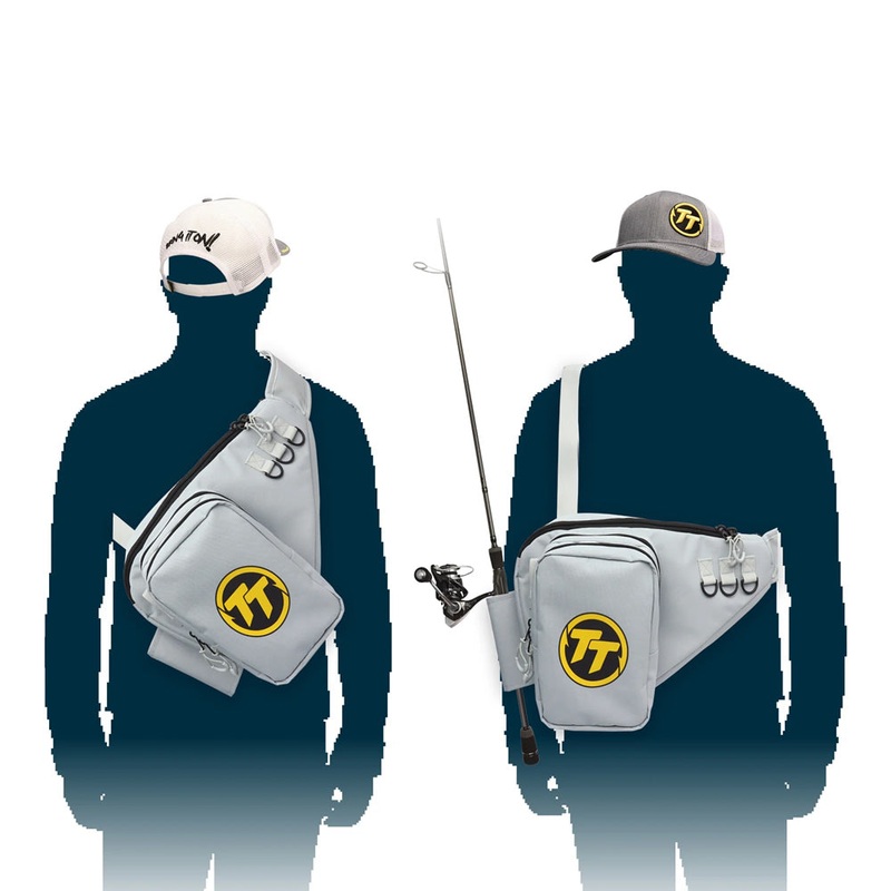For the agile land-based angler, this durable tackle sling is loaded with practical features. One large and 2 small pockets easily fit a selection of tackle trays and accessories. The small pockets perfectly fit a TT small tackle tray, while the TT medium tackle tray fits in the large pocket. Comfortably slings over the shoulder, then quickly spins around for quick access, with a handy rod holder to slot a rod into for free hands while re-rigging on the go. Also has an external pliers pouch, plus 3 carabiner points to attach accessories. One size fits most with an adjustable strap.