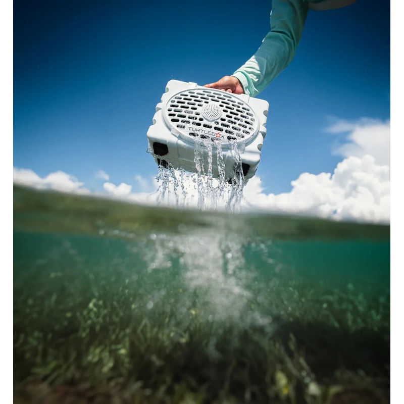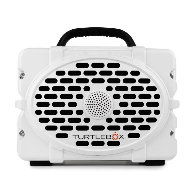 For its Big Sound, the Turtlebox is extremely portable, lightweight and compacteasily carried with one comfortable rubber handle. About the size of an old-school lunchbox and weighs about 10 lbs.