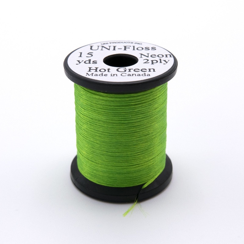 UNI-Floss Neon is atwo-ply trilobal floss (similar to Antron) with a radiant sheen. It is the go-to floss for tying salmon flies, streamer bodies, soft hackles, jigs and more. Available in beautifully bright neon colors.