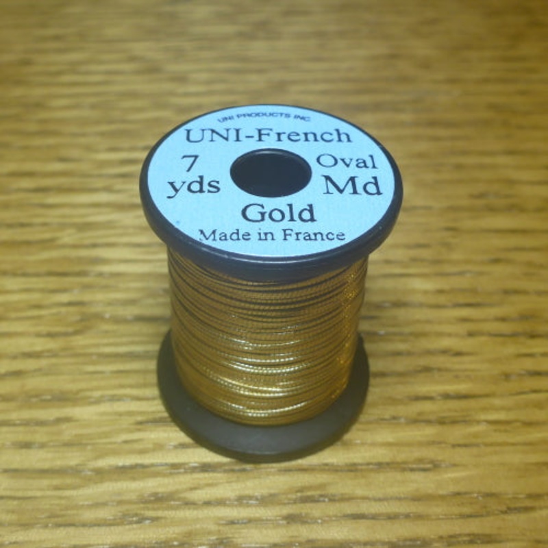 UNI French Oval Tinsel is a non-tarnishing fly tying metallic tinsel with an extra strong core. This superb tinsel is ideal for ribbing on nymph and streamer patterns. It also works as tags on salmon flies, or just adding flash to your favorite fly patterns. This tinsel has a slight bulge to the shape, so it differs from a flat Mylar. Further to that, it doesnt quite have the weight of using wire. This means you can add shape and shine to your flies without throwing out the weight balance. It makes a great addition to any fly tying selection. And should live on the bench next to your Mylar tinsel and gold wire.