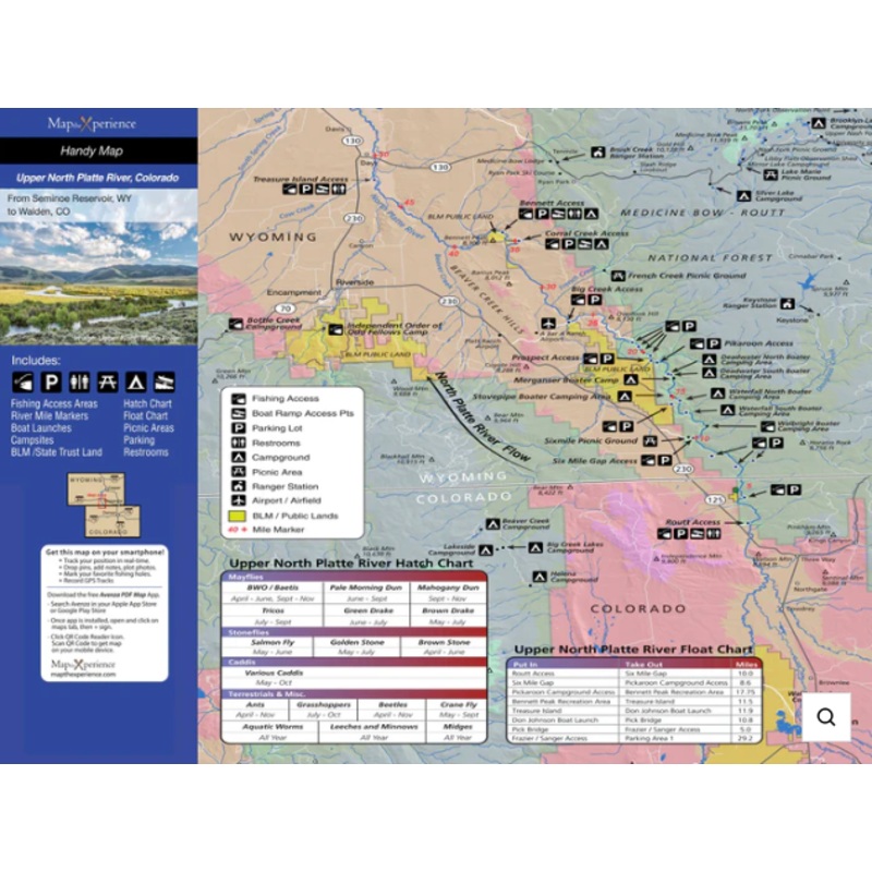 Explore the legendary Upper North Platte River, from Walden, Colorado to Seminoe Reservoir in Wyoming, with this detailed fishing map. Covering over 60 miles of world-class waters, including the renowned stretch between Routt Access and Saratoga, this map is your ultimate guide to one of the best trout fisheries in the West.