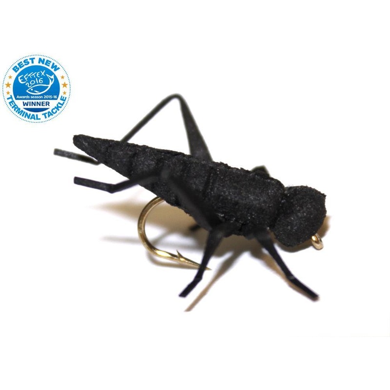 Ett tillvgagngsstt till insekterna som r bttre knda som syrsor som r i familj med grshoppor. Denna svarta fluga har en spetsig foam-liknande kropp som gr att den flyter bra p ytan och r ltt att misstas fr den kta varan.