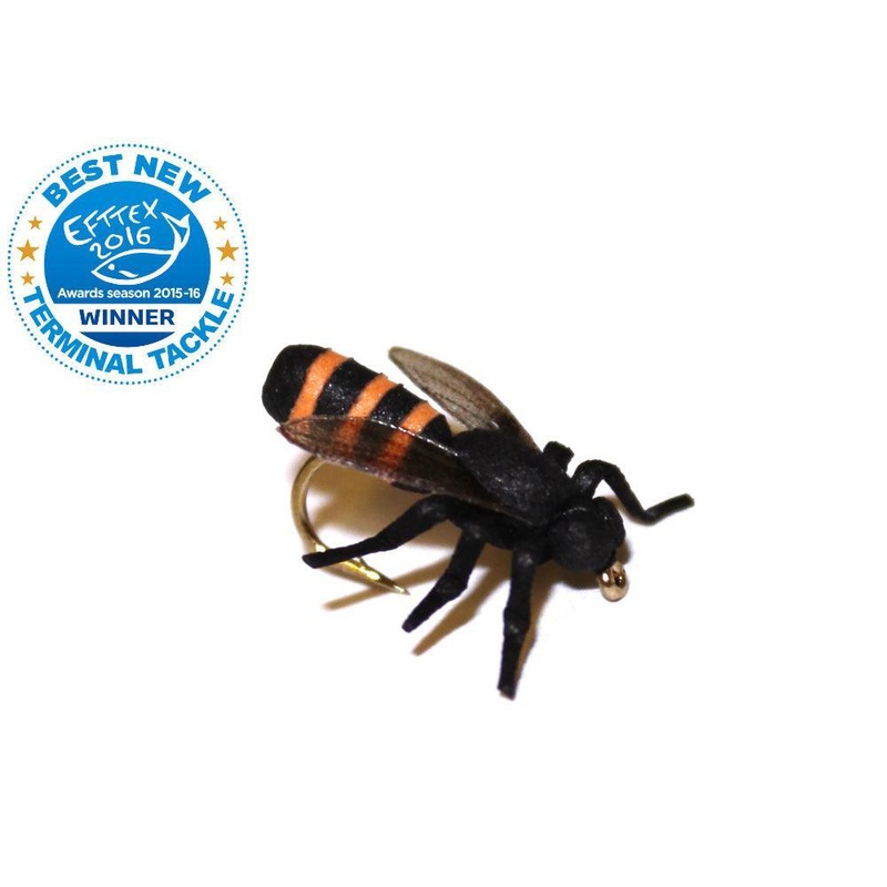 Get eller bi imitation med realistiskt mnster gr denna till en fantastisk torrfluga imitation under vr och tidig sommarmnader. Speciellt i vatten och floder som r omgivna av blommande blommor, kan denna vara en game changer. med fina kontraster p grund av de orange ringarna.
