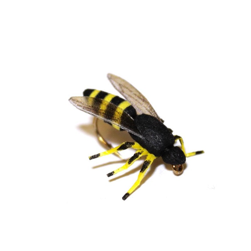 Vepseimitasjon. I utgangspunktet en helrsflue, men for mange tas denne frst frem p sensommeren eller tidlig hst. Forsvidt med rette da kuldefronter kan gjre disse insektene surrete og svimesltte slik at de i noen tilfeller havner p vanspeilet, men det er ingenting i veien med bruke den tidlig p sesongen ogs eller midtsommers. Fluen er fremstilt i Hi-flote-Foam og er s godt som usenkelig. En slager i hissige triggerfarger.