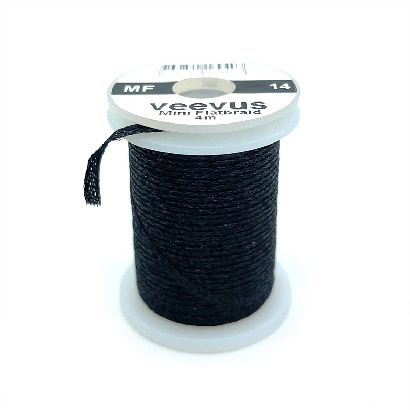 Veevus Mini Flat Braid is an exceptionally versatile woven synthetic tinsel material. With a width of approximately 3.5mm it is perfectly suited for ribbing larger patterns as well as for imitating wing cases, scud backs, flash backs, thorax plates and tying delicate tags and bodies on smaller flies. Hence, it is equally suitable for trout, grayling, sea trout, salmon and even saltwater flies (e.g. Gotcha). Veevus Mini Flat Braid does not create bulk and thus makes fine ribbings and delicate bodies easy to tie. Available in your choice of 23 popular colors!