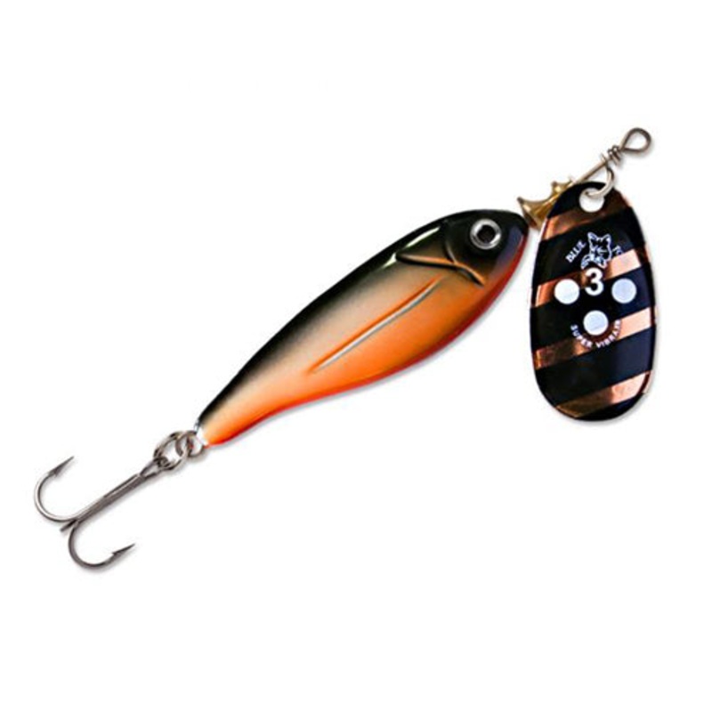 Blue Fox Minnow Super Vibraxa long-casting spinner that has been designed with a natural baitfish profile in place of a traditional spinner body. When retrieved, the blade spins and flashes in front of the vibrating lure body to catch the attention of any nearby predator fish. The elongated aerodynamic design cuts through air and water with ease, ensuring each cast reaches its maximum potential distance.