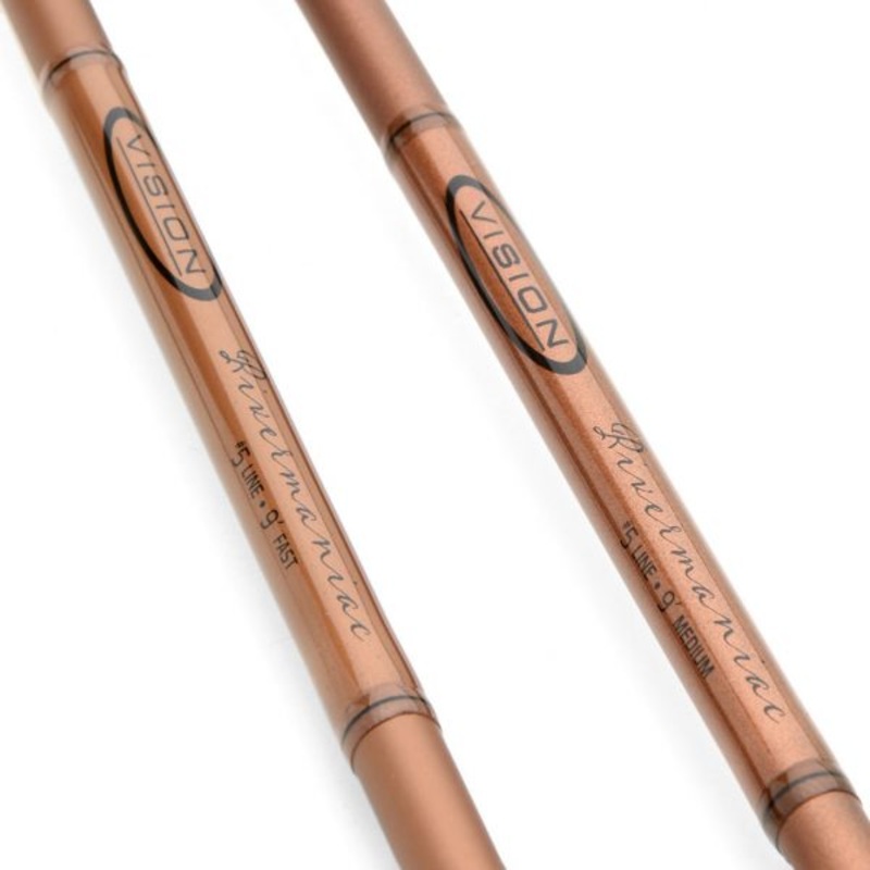 The NEW Vision Rivermaniac These amazing 9’0″ fly rods are available in #3 to #6, with the addition of a new 9’6”#7 to the family and have been designed specifically with dry fly fishing in mind. From small, intimate streams to the largest and most demanding of rivers there’s a rod to suit your particular situation. Delivering high-end performance at a remarkably handsome price, the Rivermaniac offers the perfect combination of backbone and sensitivity, allowing for a smooth loading of the rod with plenty of feedback throughout the casting stroke. With a classic design as well as feel, they are also devastatingly good looking; the perfect companion for stalking those specimen trout on the rivers. We have given you a choice between two actions to suit your preferred style and required presentation.