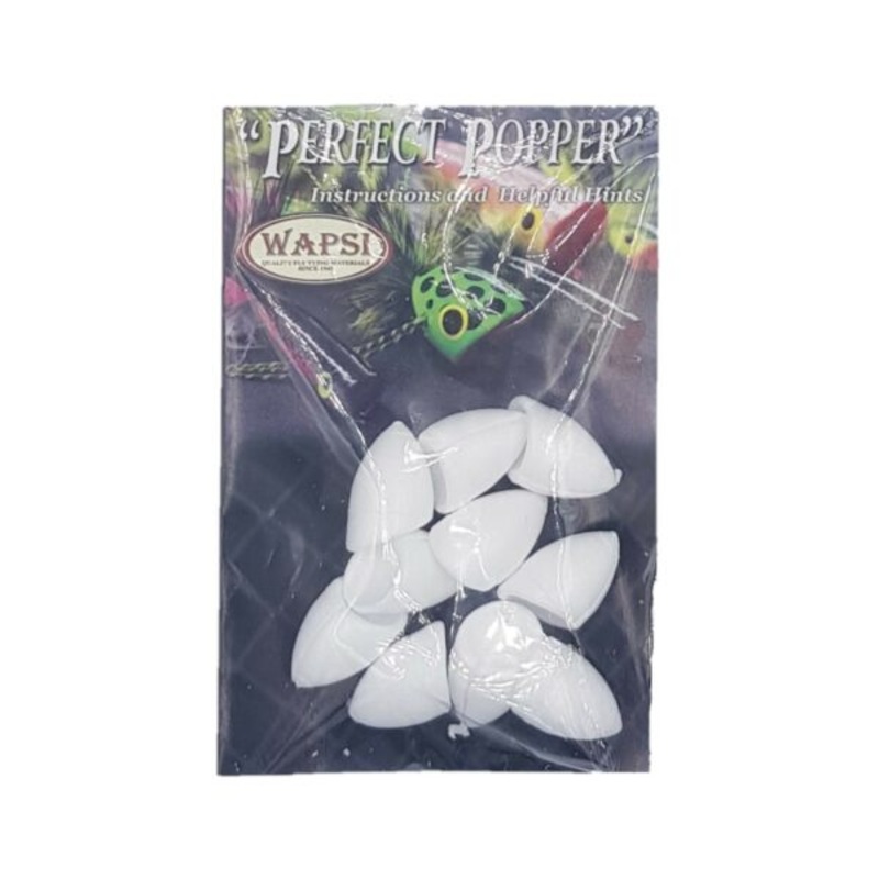 The Wapsi Hard Foam Poppers are available in 4 styles – TCS (tapered, cupped and slotted), the classic bug shape or (when reversed) for sliders; saltwater, with an extra thick body for big fish; pencil, for imitating small baitfish on topwater. Also the small “Bream” hard popper for smaller warmwater fish like bluegill, crappie, bream or perch.