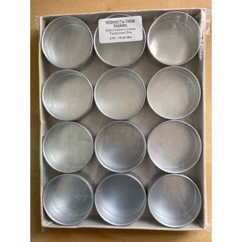 Useful in organizing beads, hooks, tied flies and all sorts of small tying materials. 1.75 ” Glass-topped aluminum containers, Item# 2313