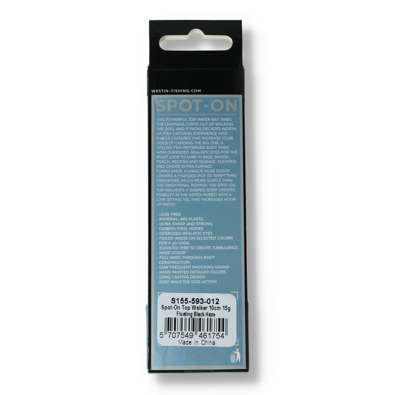Der SpotOn Top Walker ist ein kraftvoller Oberflchenkder mit stabiler WalktheDog-Aktion und knackigem Pop-Sound perfekt fr Barsch, Zander, Hecht & Co. Der schlanke V-Krper, groe Augen und feine Rippung erzeugen Turbulenzen, die selbst scheue Ruber locken ideal bei Zeb-Raein oder Flachwasser.