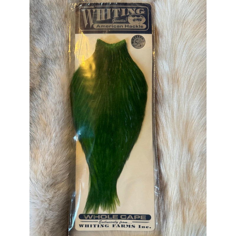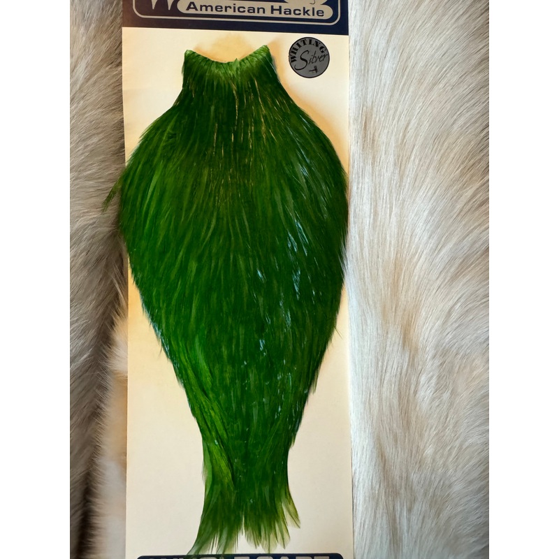 The feathers from the Roosters of the Whiting Farms American Hackle offer exceptionally good and sometimes unique tying feathers. First of all they have a greater density of web than any other type of hen saddle, creating an almost velvety texture with a solid silhouette. The generous breadth and length of the feathers provides greater size and density for those flies that demand it. Yet the quill is not overly large or stiff, and along with only modest taper, allows easy wrapping.