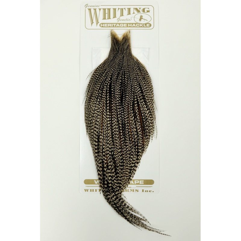 The Heritage line from Whiting consists of a wide range of natural colorations ranging from common to rare and unique variants. Each cape/saddle is one of a kind and individually graded. As a result, the hackle sizes can also vary in use from the smallest midge dry flies to larger attractor and terrestrial patterns.