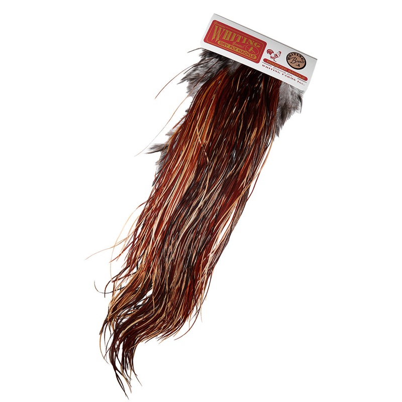 The Bronze level of the Whiting Farms Dry Fly Hackles are some ofthe stiffest, most dense barb count on the supplest of quills, the Whiting line of capes and saddles are the preferred choice of dry fly tiers around the world