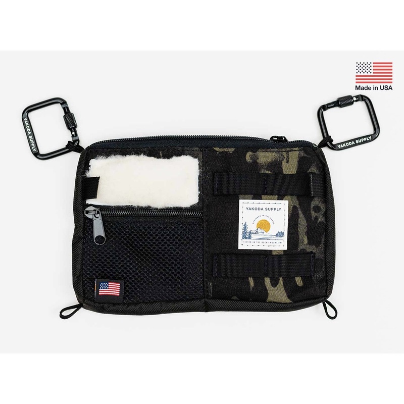 TheUtility Pack is a versatile storage pouch that easily adapts to how you’re fishing. It can beconnected to the straps on your waders and worn on the chest using the included Yakoda carabiners, attached to a belt through the webbing loops on the back for use as a minimalist wet wading setup, and fastened to the outside of your pack during the hike in.